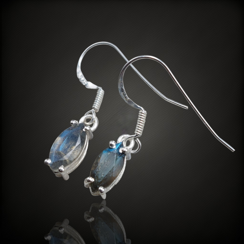 Labradorit köves lógós ezüst fülbevaló