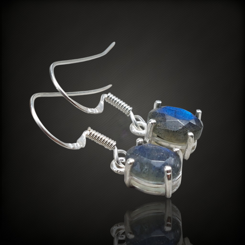 Labradorit köves lógós ezüst fülbevaló