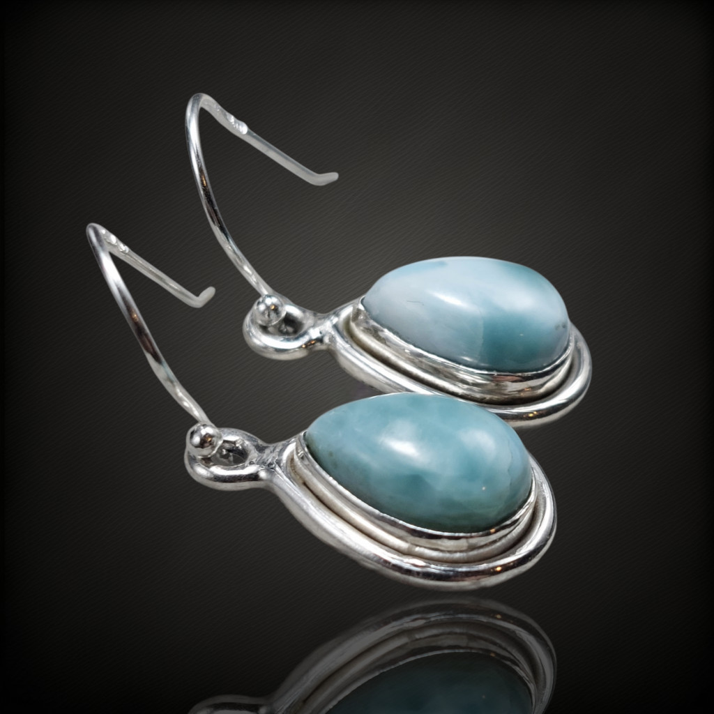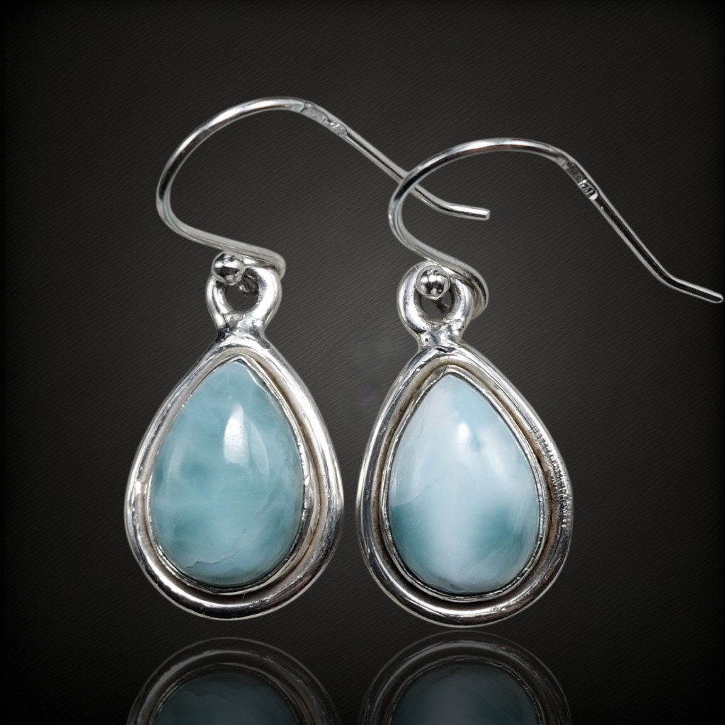 Larimár köves lógós ezüst fülbevaló