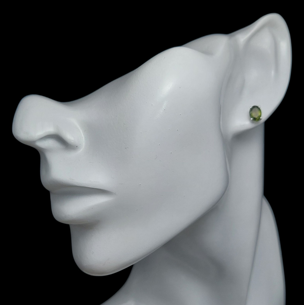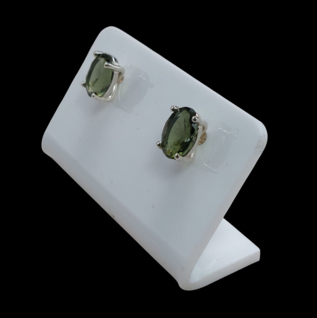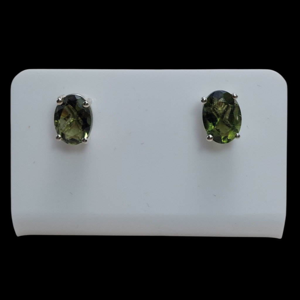 Moldavit köves beszúrós fazonú ezüst fülbevaló.A kövek nagysága: 7x5mm, származási helyük: CsehországAz ékszer anyaga 925-ös finomságú ezüst A kövek színe élőben kis mértékben eltérhet a képen láthatótól!