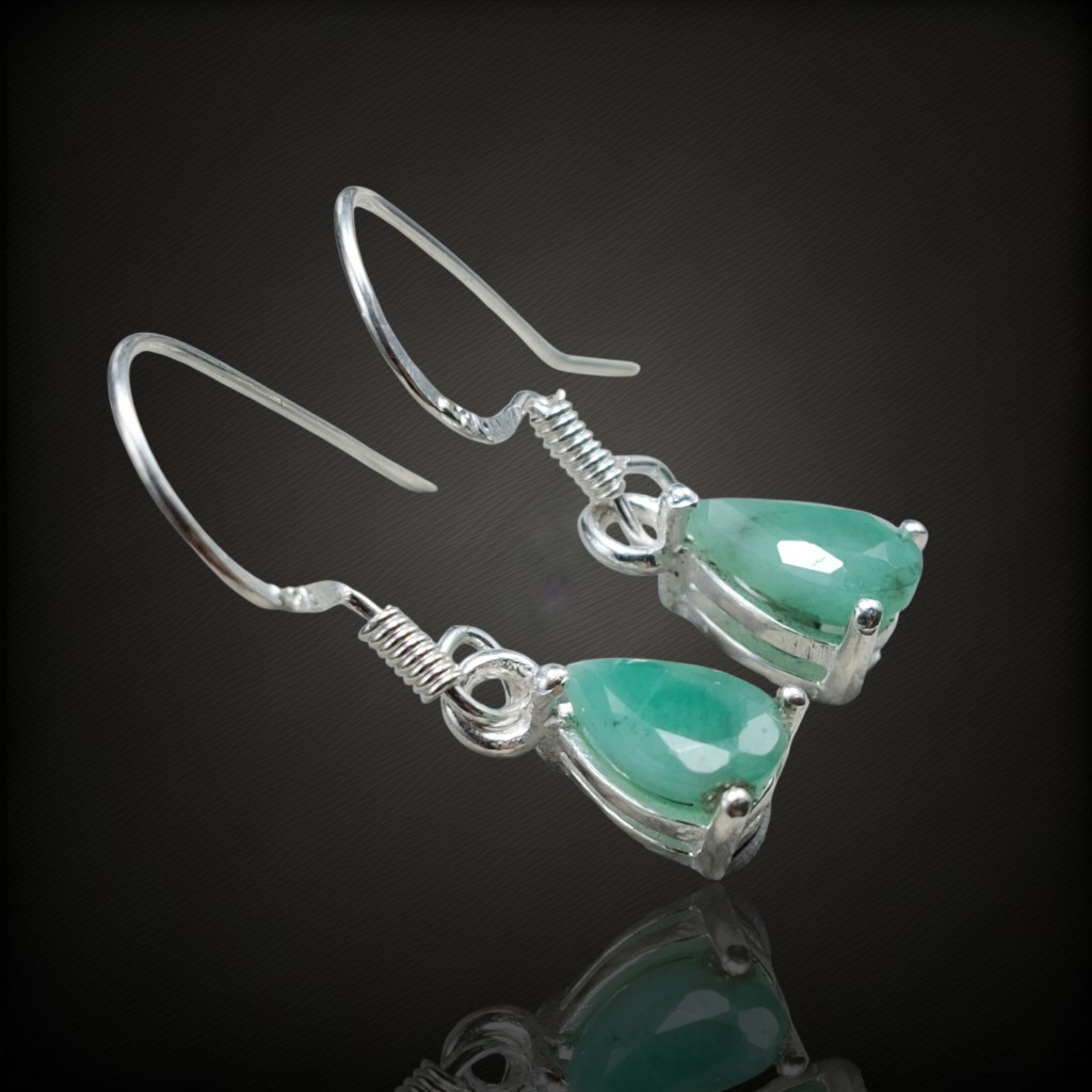 Smaragd köves lógós ezüst fülbevaló