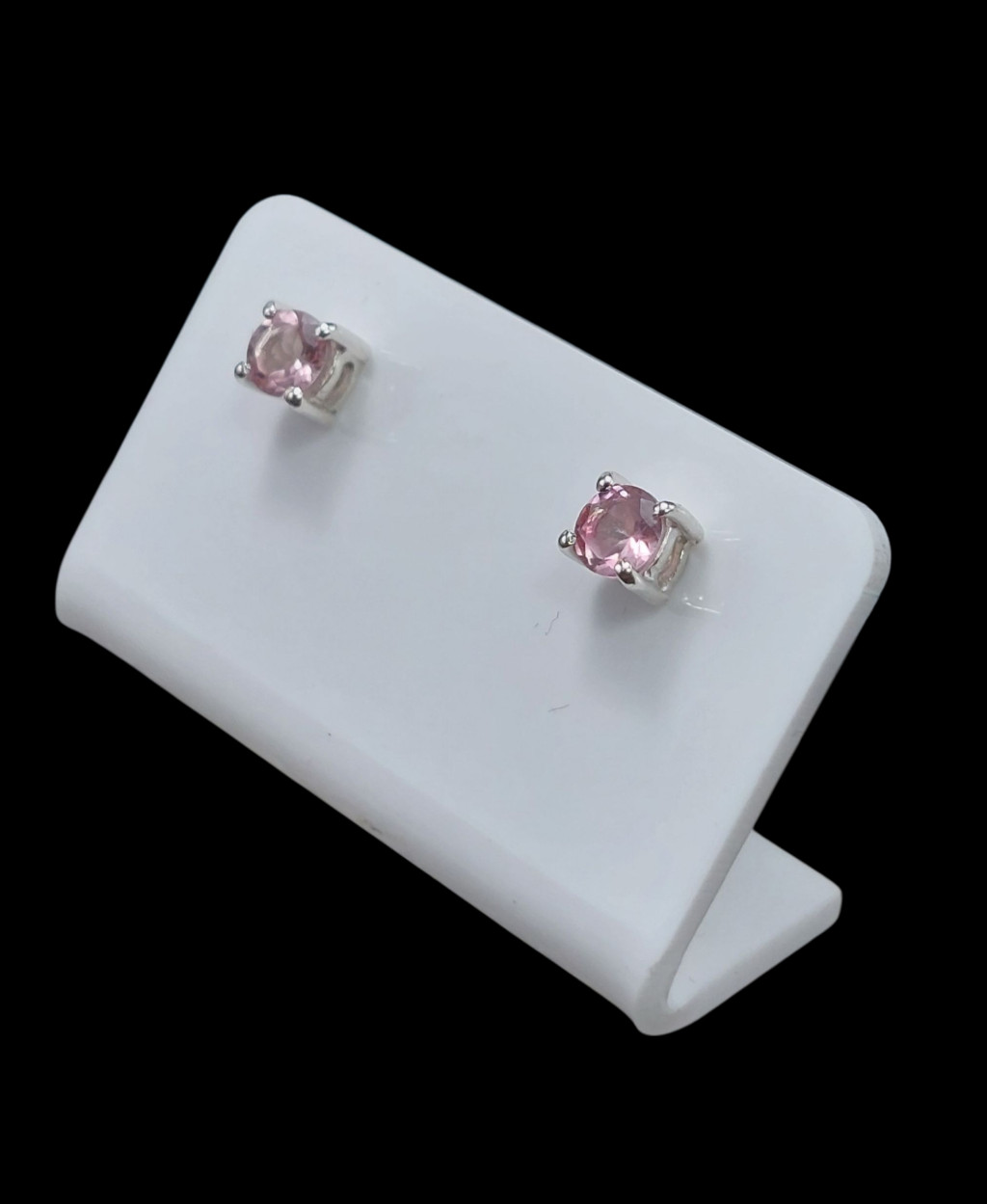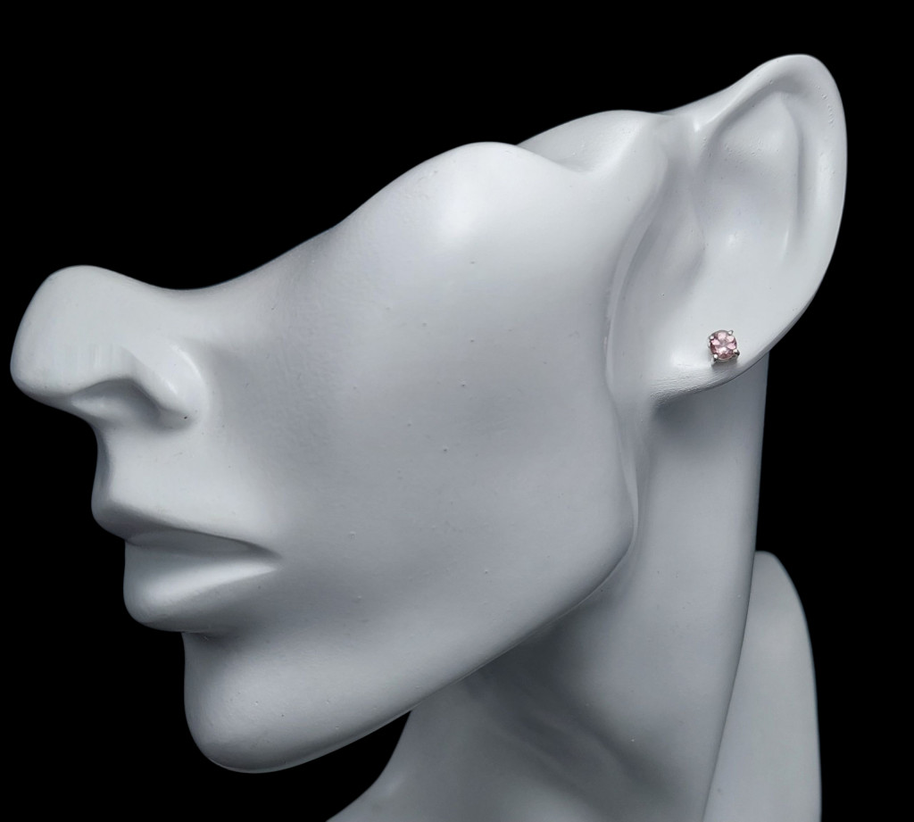 Rózsaszín turmalin köves beszúrós ezüst fülbevaló