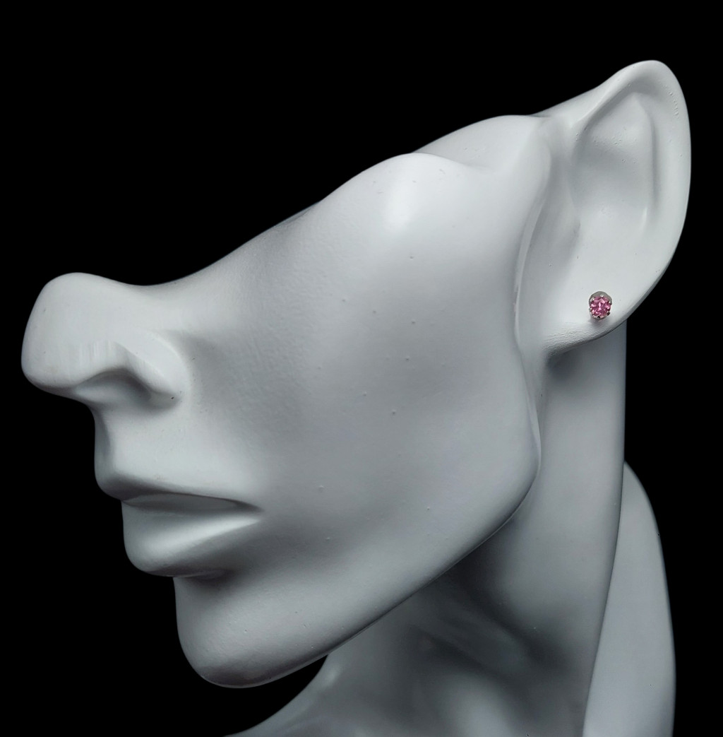 Rubellit turmalin köves beszúrós fazonú ezüst fülbevaló.A kő nagysága: 4mm, származási helyük: NigériaAz ékszer anyaga 925-ös finomságú ezüst.A kövek színe élőben kis mértékben eltérhet a képen láthatótól!