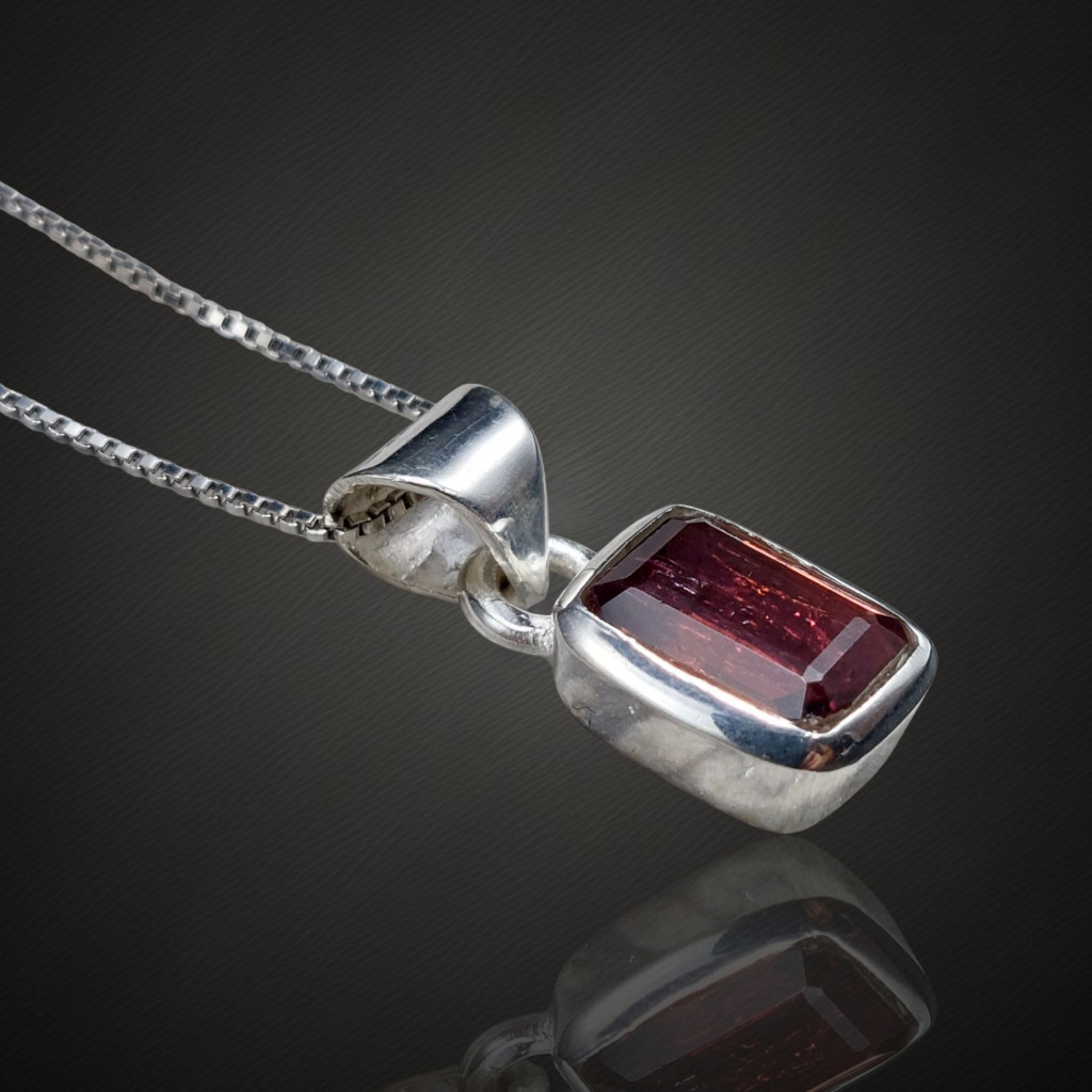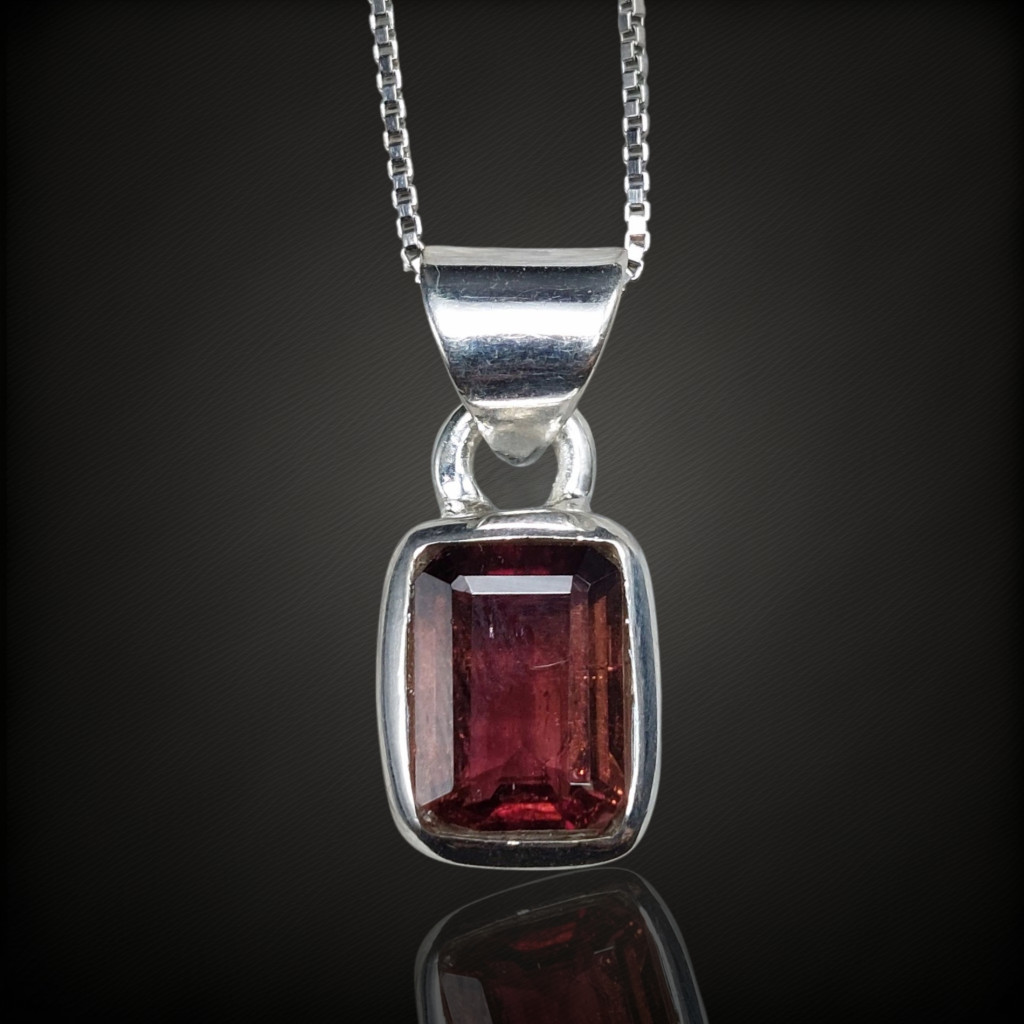 Vörös turmalin (rubellit) köves ezüst medálA medál magassága bújtatóval együtt 21mm.A kő nagysága: 10x8mm, származási helye: NigériaAz ékszer anyaga 925-ös finomságú ezüst. A kő színe élőben kis mértékben eltérhet a képen láthatótól!A nyaklánc nem tartozék!